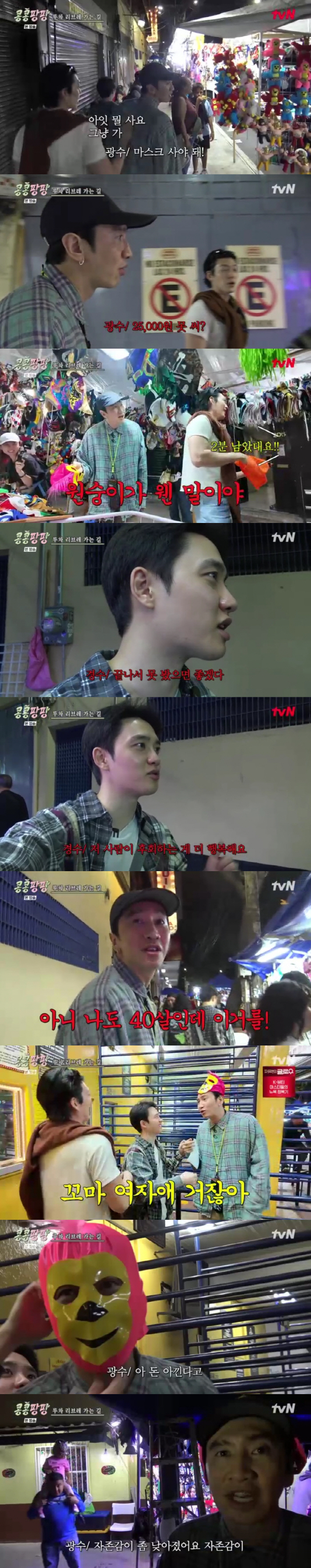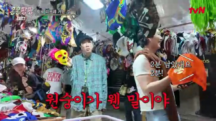 During the trip, Lee Kwang-soo stopped at various souvenir shops selling traditional wrestling masks. He became particularly interested in a fancy one but was disappointed by the price—25,000 won. When Kim Woo-bin suggested skipping the purchase, Lee reacted with surprise, saying, "Can't even spend this much?" while smiling.