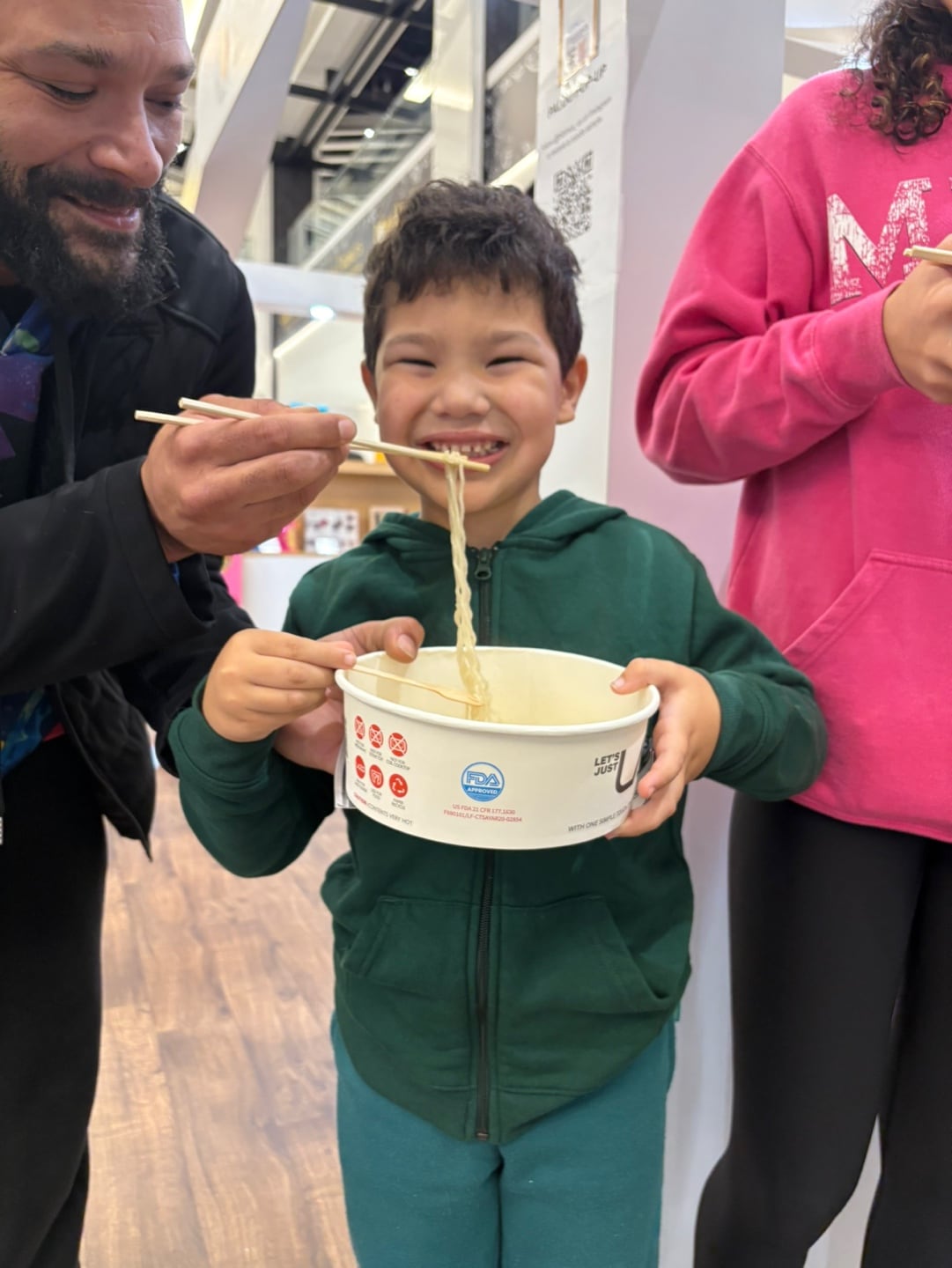 In front of the booth of the Korean small and medium-sized enterprise ‘Beomil Industry,’ which promotes the Han River Ramen Machine, locals skillfully selected and boiled their preferred ramen and ate it with chopsticks. “I work at an elementary school, and it’s common for kids to sing the theme song from ‘KPop Demon Hunters’ and play ‘Red Light, Green Light’ from ‘Squid Game.’ If you come to our school, you’ll realize how popular Korean culture is.”