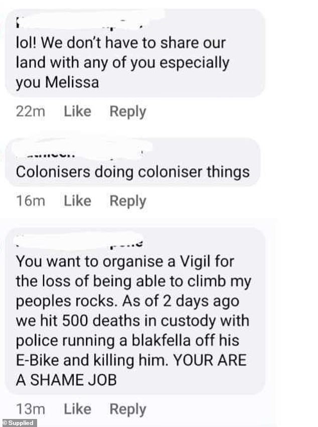She also pointed out that the towns surrounding Mount Arapiles have become deeply divided over how Parks Victoria is handling the climbing bans. Melissa revealed that she has received messages and threats from individuals accusing her of being a "coloniser" or a "racist." She noted that some people have even sent anonymous letters and death threats, which remain unreported.